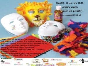 Sâmbătă, 10 mai, ora 11.00, Atelierul creativ „Măşti din poveşti” pentru copii cu vârsta intre 5-12 ani.