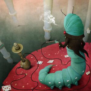 Încercă să se miște dar ceva o împiedică. Abia acum își dădu seama că se uitase atâta timp la altă omidă încât corpul ei înțepenise, picioarele-i amorțiseră iar ochii o usturau. Încercă din nou să se târască dar parcă era un burete uscat scârțâind pe scoarța copacului. Și vaai se desprinse și căzu printre crengi, căzu printre frunze direct pe o ciupercă uriașă.