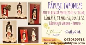 Sâmbătă, 19 august, de la ora 11.30, Cristina de la Ateliere CatbyCat pentru copii vă invită la o nouă sesiune de artă japoneză, unde veți descoperi istoria păpușilor din hârtie și veți crea, prin tehnica origami, un semn de carte cu o păpușă japoneză.