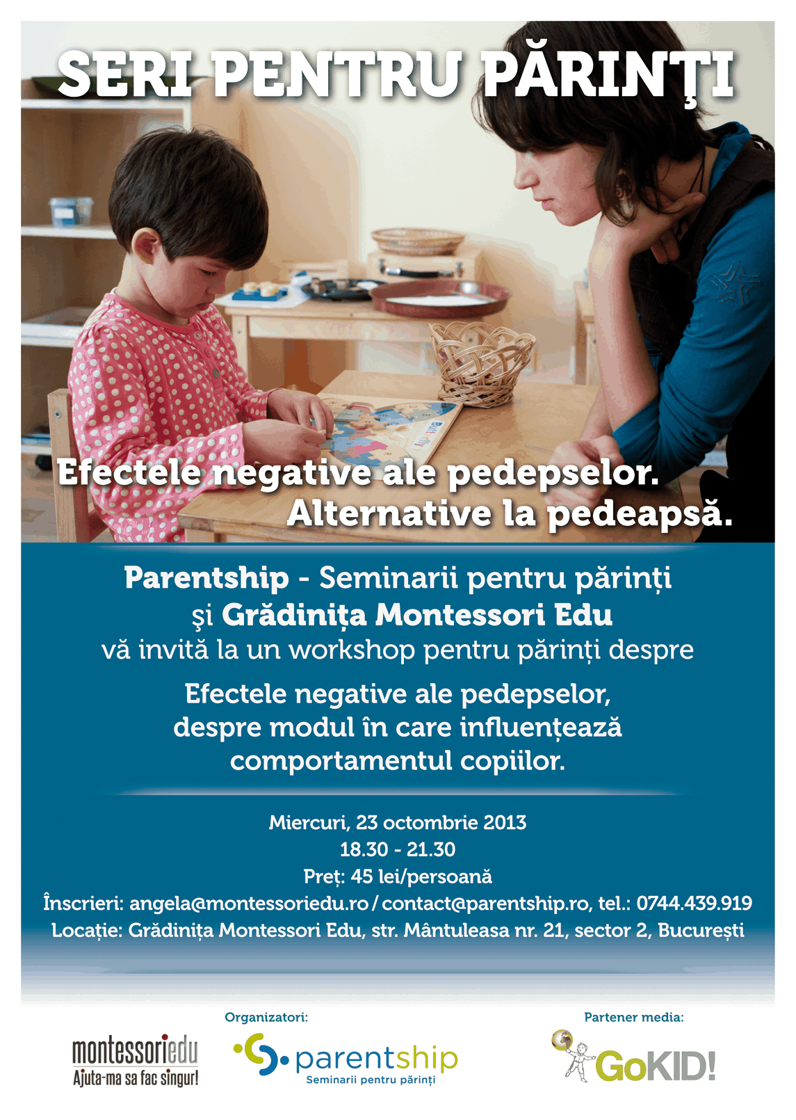 Parentship – Seminarii pentru parinti si Gradinita Montessori Edu va invita la un workshop pentru parinti despre Efectele negative ale pedepselor, despre modul in care influenteaza comportamentul copiilor.
