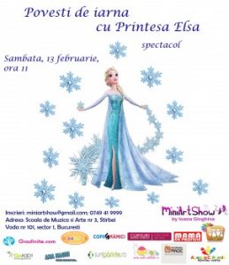 Iarna este anotimpul preferat al printesei Elsei, o printesa careia ii place sa se joace cu zapada, sa patineze, sa se dea cu sania si sa descopere magia alba a acestui anotimp. Vino alaturi de ea, ca sa vezi o combinatie de spectacol si atelier senzorial si creativ, despre joaca, iarna si zapada.