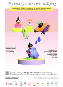 Spectacolul „12 povești despre bullying” face parte din cea de-a doua etapă a proiectului „Poveștile care ne fac bine. Exerciții de imaginație, scriere creativă și teatru”. Textul spectacolului a fost inspirat din poveștile incluse în „Manualul de bine” și dramatizat de Gabriela Dumitru. În urma castingului organizat de Teatrul Ion Creangă pentru stabilirea distribuției, au fost selectați patru copii din centrele DGASPC SECTOR 5 pentru a juca în spectacol, alături de actorii Teatrului Ion Creangă – Claudia Revnic și Oliviu-Cristian Bughiu. Regia spectacolului este semnată de Gabriela Dumitru, scenografia de Andrei Răduț, iar premiera spectacolului va avea loc la finalul lunii septembrie.