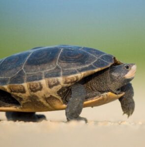 Frunzele tufișului din stânga se mișcară, făcându-i să se oprească din mâncat. De sub frunze, agale, apăru o țestoasă mare, cu o carapace galben-portocalie care avea marginile conturate cu negru. Îi cercetă curioasă pe amândoi, apoi ochii ei rotunzi se opriră mai mult timp asupra Ewei.