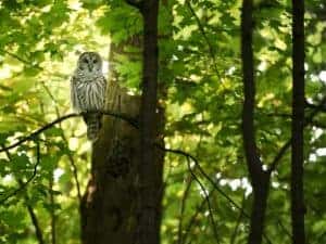 Luat prin surprindere, bietul arici se dezechilibră, gata-gata să cadă. Ewa sări și ea, aproape să dea cu capul de o creangă. Cu un fâlfâit de aripi, o bufniță se așeză pe o creangă aproape de arici.