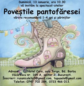 Tapuşele ne invită la spectacolul-atelier recomandat copiilor de 1-4 ani și părinților: Poveştile pantofăresei!