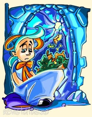 Coloane de gheață împodobeau intrarea, tuberoze de gheață se desenau pe podea iar pe tavan mii și mii de țurțuri albicioși zornăiau și zăngăneau.