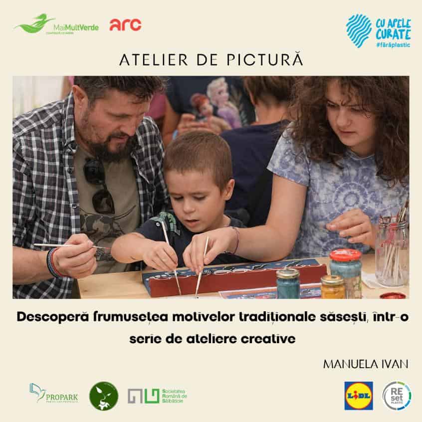 Un atelier artistic unde copiii pictează obiecte din lemn, folosind motive tradiționale săsești. Pe lângă bucuria de a crea ceva cu mâinile lor, cei mici află povești despre tradițiile locale și modul în care acestea reflectă legătura strânsă dintre om și natură. (6–14 ani | 40 lei/participant, include toate materialele)