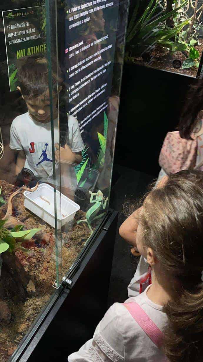 Pe parcursul unui tur ghidat de o oră, elevii vor fi în centrul experienței, explorând fascinanta lume tropicală și învățând într-un mod interactiv și accesibil despre reptile, rolul lor în natură și importanța acestora pentru echilibrul planetei. Copiii vor afla povești uimitoare despre vietăți pe care puțini au ocazia să le cunoască de aproape, în deplină siguranță: iguane, cameleoni, șopârle gecko leopard, pitoni, caimani (crocodili mici).