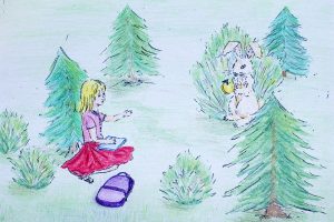 – Iepuraș pufos, hai la mine să ne împrietenim. Vino să te mângâi încetișor pe frunte și să-ți citesc ce am scris în caiet.