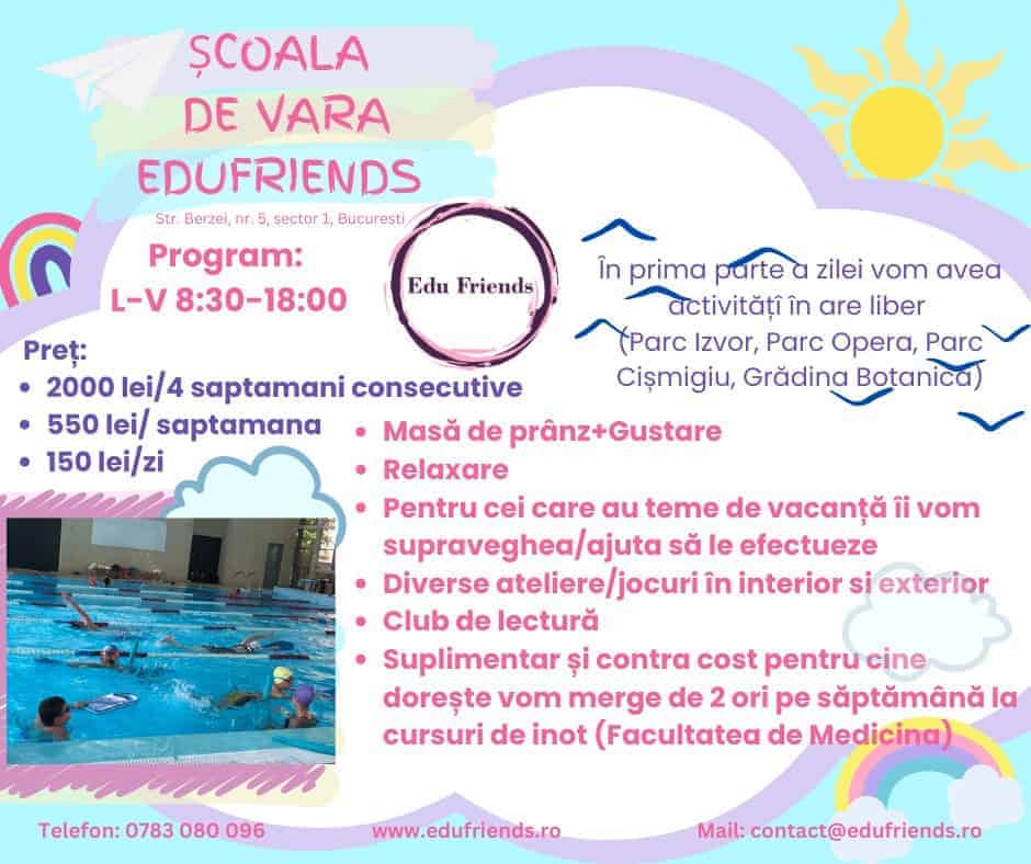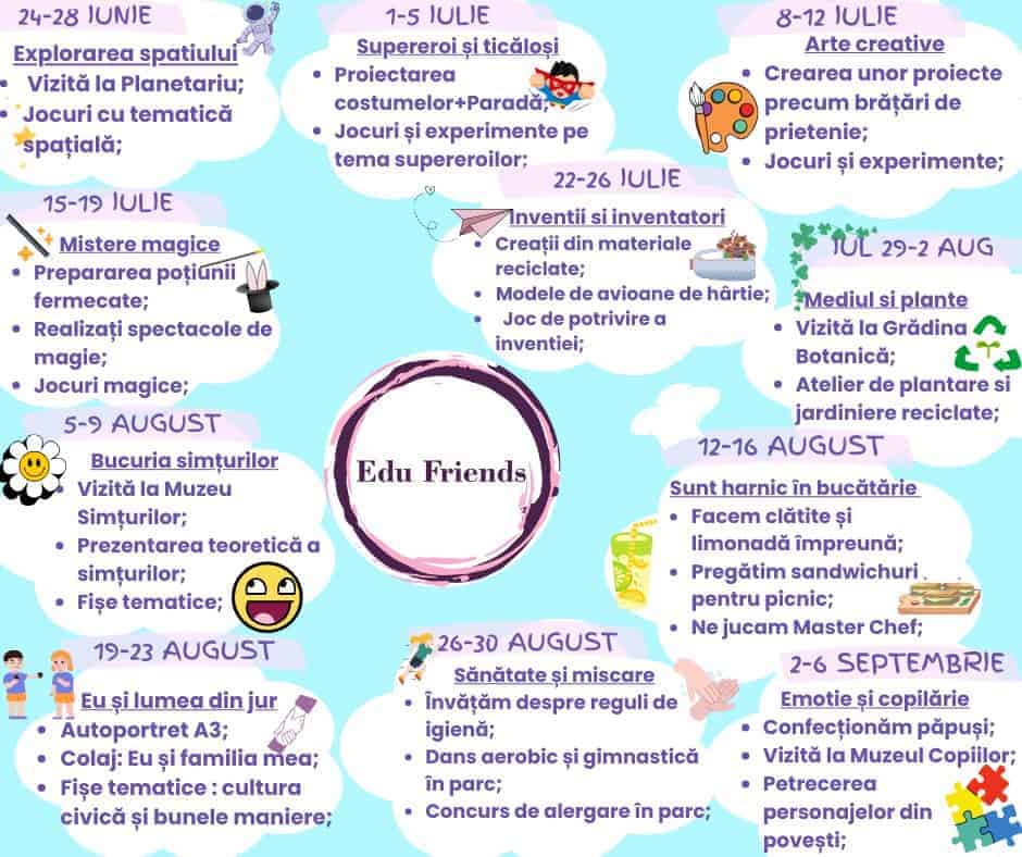 🎉 Alătură-te pentru o vară plină de distracție, învățare și prieteni noi! La Școala de Vară din cadrul afterschool-ului EduFriends copiii vor avea oportunitatea unică de a explora lumea în moduri captivante si educative.