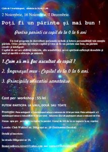 Va invitam din Noiembrie la intalnirile pe tema POTI FI UN PARINTE SI MAI BUN ( adresat parintilor de copii cu varsta cuprinsa intre 0-6 ani)