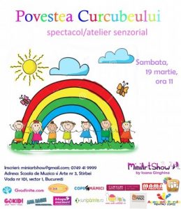 La acest atelier senzorial copii aflam povestea despre Tara Curcubeului in care traiesc 5 printese frumoase, dar tare nazdravane. Verzusul, print si el, nu poate sa-si explice de ce tot timpul surorile lui simt nevoia de a se lauda cu frumusetea si faima lor?!