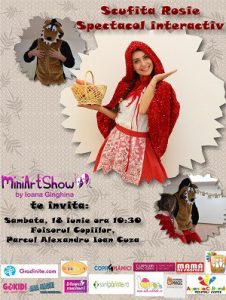 Sambata ne intalnim in Parcul IOR, cu Scufita Rosie, cu lupul si cu bunicuta la un spectacol interactiv de poveste, cu un deznodamant fericit, urmat de jocuri, distractie, dar si facepainting.