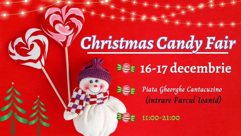 Povestea continuā pe 16 / 17 decembrie cu un târg dulce ca o bomboanā, care ne va duce cu gândul la Crāciunul din copilārie! Aducem un strop de magie la Christmas Candy Fair, magie cu miros de scortisoarā, portocalā sau turtā dulce, redescoperim fericirea simplā de copil care crede în Mos Crāciun, bucuria de a ne aduna în jurul bradului!