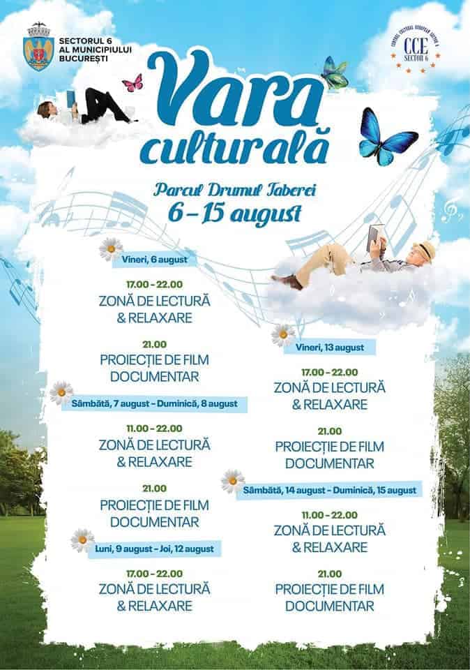 Vară culturală “toridă” în Sectorul 6! Primăria Sectorului 6, prin Centrul Cultural European Sector 6, vă invită la un eveniment cultural dedicat tuturor iubitorilor de lectură, muzică, teatru, dar și proiecții de film în trei parcuri ale sectorului.