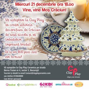 Pe 21 Decembrie puteti participa la un eveniment special de Craciun la Clay Play unde aveti ocazia de a crea decoratiuni de Craciun si impodobi bradul