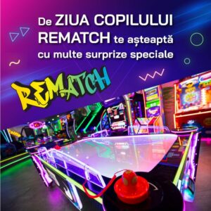 De 1 iunie, la Rematch vă așteptăm cu multe surprize speciale: jocuri atractive, vouchere valorice și multe alte surprize! O experiență în locația ta preferată cu jocuri arcade te poate face să te simți din nou copil!