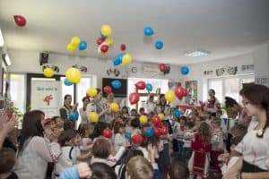 Două mari sportive ale României, Monica Iagar şi Ruxandra Dragomir, le-au povestit copiilor despre mândria pe care o simte un sportiv atunci cand stă pe cea mai înaltă treaptă a podiumului de premiere şi ascultă imnul naţional, despre medaliile caştigate, dar şi despre munca susţinută pe care trebuie să o depună pentru a ajunge acolo.