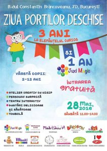 Parinti, bunici, prieteni dragi, avem placerea sa va anuntam ca Elefantelul Curios si Juxi Magic va invita la joaca pe data de 28 Mai 2016 in intervalul 11:00-14:00.